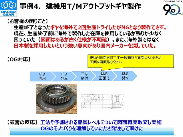 - ・歯車及び関連部品における単品・試作の製作、納入